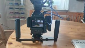 Den C 100 Mark II setze ich gerne als Handkamera ein, wofür er bei mir in ein kleines Rig eingebaut ist, das mit den zwei Handgriffen ein brauchbares ruhiges Bild liefert. Wenn ich ein Stativ einsetze, dann nehme ich gerne meinen Mark I her und verwende Wechselobjektive.