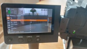 Ganz oft benutze ich den Camcorder um Kindern und Jugendlichen oder auch meinen KursteilnehmerInnen zu zeigen, wie sich die Einstellungenen des Belichtungsdreiecks, also die Wechselwirkung zwischen ISO, Blende,  (Shutter/Verschlusszeit lasse ich fest bei 1/50)  und unterschiedliche Brennweiten auf das Bild auswirken. Dazu brauche ich nur einen Externen Monitor und ein HDMI-Kabel, das direkt am Camcorder hängt.