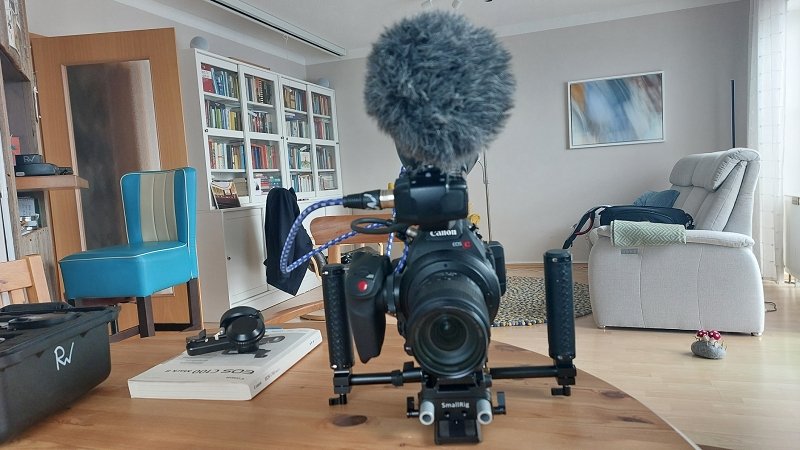 Den C 100 Mark II setze ich gerne als Handkamera ein, wofür er bei mir in ein kleines Rig eingebaut ist, das mit den zwei Handgriffen ein brauchbares ruhiges Bild liefert. Wenn ich ein Stativ einsetze, dann nehme ich gerne meinen Mark I her und verwende Wechselobjektive.