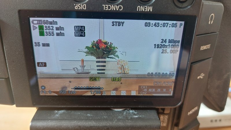 Ganz oft benutze ich den Camcorder um Kindern und Jugendlichen oder auch meinen KursteilnehmerInnen zu zeigen, wie sich die Einstellungenen des Belichtungsdreiecks, also die Wechselwirkung zwischen ISO, Blende,  (Shutter/Verschlusszeit lasse ich fest bei 1/50)  und unterschiedliche Brennweiten auf das Bild auswirken. Dazu brauche ich nur einen Externen Monitor und ein HDMI-Kabel, das direkt am Camcorder hängt.