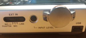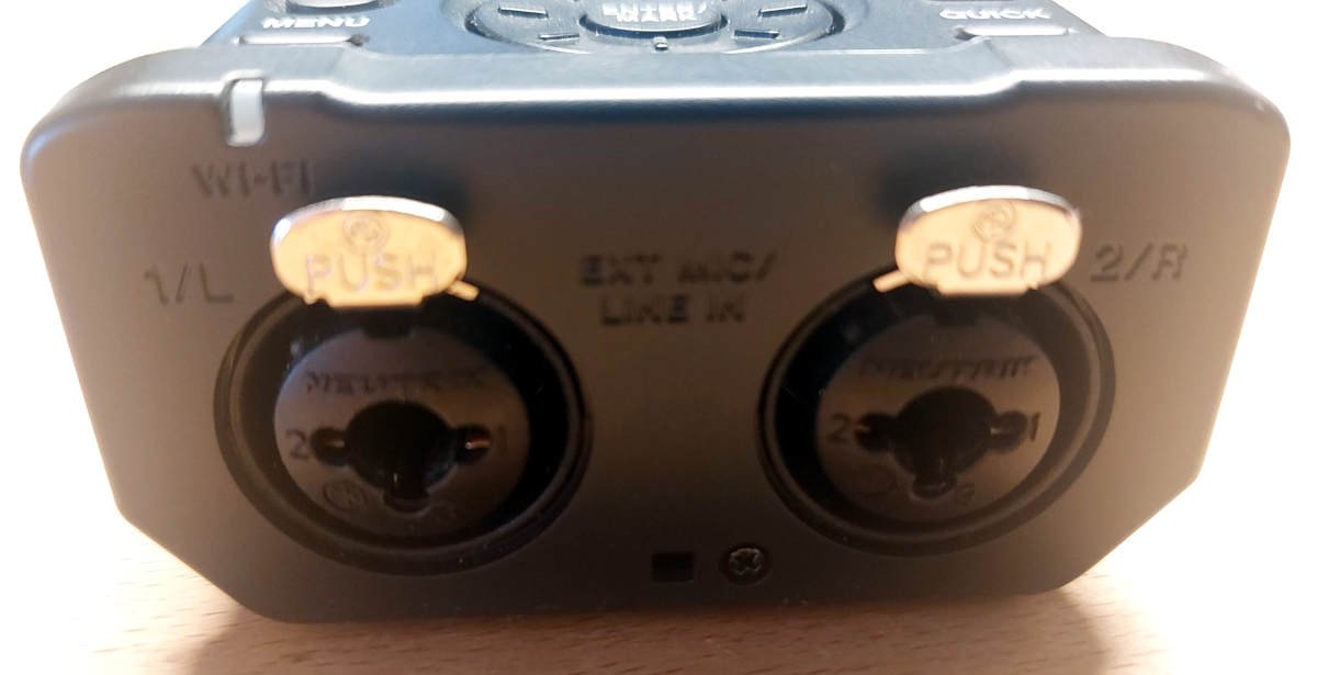 Der Recorder hat zwei „Betriebsmodi“, zum einen kann man ihn im 4-Spur-Modus betreiben oder als 4-Spur Multitrack-Recorder. Im erstgenannten Fall kann man entscheiden ob man 1,2,3 oder 4 Spuren gleichzeitig aufnehmen möchte. Ein solcher Anwendungsfall wäre zum Beispiel die Live-Aufnahme einer Band, wobei die beiden eingebauten Mikros von zwei weiteren Kanälen, zum Beispiel der Stereosumme eines Mischpultes, ergänzt werden. Hierzu benutzt man dann die beiden XLR-Kombibuchsen an der Geräteunterseite, die sowohl ein XLR Kabel aufnehmen als auch jeweils einen 6,3mm Klinkenstecker.